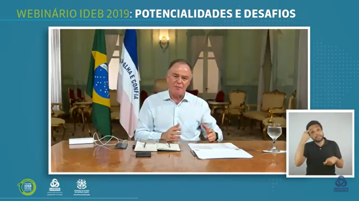 O governador do Estado, Renato Casagrande, participou, na tarde desta quinta-feira (24), de um webnário que analisou o resultado do Índice de Desenvolvimento da Educação Básica (Ideb) 2019. Na ocasião, Casagrande parabenizou os professores e alunos pelo bom resultado – o Espírito Santo alcançou a melhor avaliação do Ensino Médio da Rede Pública do País no Ideb dos últimos dez anos, sendo destaque ao lado do Estado de Goiás. O debate com o tema “Potencialidades e Desafios” teve as participações do secretário de Estado da Educação, Vitor de Angelo, e do superintendente executivo do Instituto Unibanco, Ricardo Henriques.