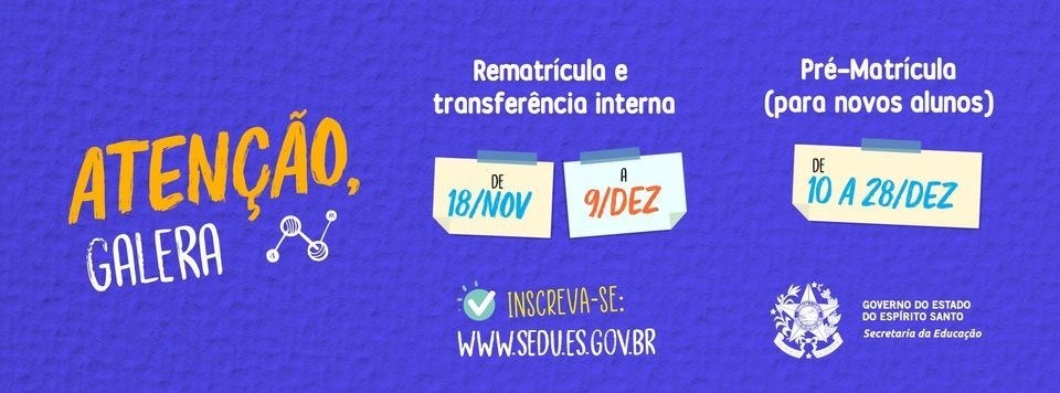 O período para solicitar a Rematrícula e Transferência Interna da Rede Estadual termina nesta quarta-feira (09). Este ano, essa etapa conta com algumas mudanças: a Rematrícula poderá ser feita pela escola, por meio do perfil da unidade no Sistema Estadual de Gestão Escolar (Seges), após sondagem do aluno e/ou responsável. Já a Transferência Interna deverá ser feita, exclusivamente, pelo aluno e/ou responsável no Seges.