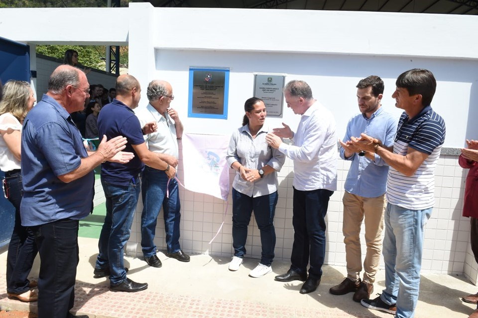 O governador do Estado, Renato Casagrande, e a vice-governadora Jaqueline Moraes estiveram em Alfredo Chaves, na manhã desta quinta-feira (3), para a inauguração da quadra poliesportiva da Escola Municipal de Ensino Fundamental (EMEF) Ana Araújo e da entrega de veículos e equipamentos para a implantação da “mini Ceasa” no município. Também foi anunciado um convênio para construção de uma escola no distrito de Ibitiruí.