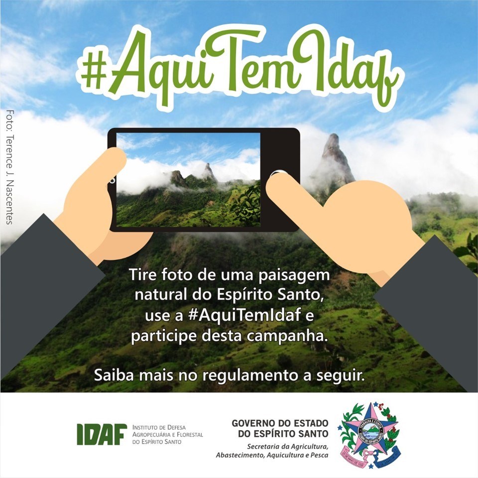 O Espírito Santo apresenta belíssimas paisagens naturais de norte a sul do Estado e o Instituto de Defesa Agropecuária e Florestal do Espírito Santo (Idaf) contribui diretamente para a preservação ambiental dessas áreas. Com o objetivo de conscientizar os capixabas sobre a importância da preservação das belezas naturais e a atuação fundamental do Instituto, a Gerência de Educação Sanitária e Ambiental e a Assessoria de Comunicação do órgão criaram a hashtag #AquiTemIdaf, que poderá ser utilizada por usuários da rede social Instagram.