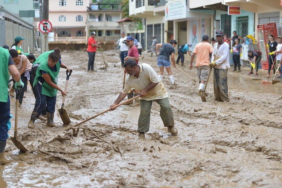 Durante todo o dia, os voluntários recolheram entulhos que estavam espalhados pelas ruas, auxiliaram na retirada de várias residências e removeram grande parte da lama acumulada nas vias. Os trabalhos foram auxiliados pelas máquinas contratados pelo Governo do Estado, além de veículos e equipamentos de órgãos do Estado, do Exército e também os cedidos por particulares.