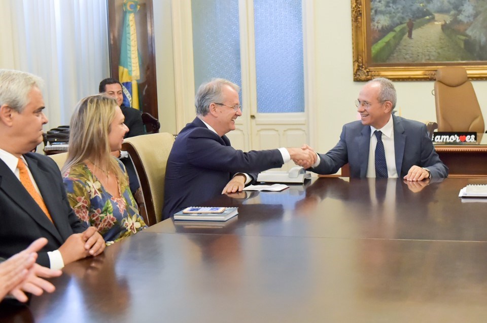 O governador Paulo Hartung reassumiu o cargo no início da tarde desta segunda-feira (02), após viajar em missão internacional para Itália onde participou da principal feira do setor de rochas do mundo, a 52ª Marmomac. A missão de Hartung também incluiu compromissos diplomáticos e reuniões visando novas parceiras e intercâmbios. Durante a missão, Hartung assegurou ao Estado a vinda de uma fábrica italiana, do Grupo Sprea, produtora de resina. Serão investidos R$ 50 milhões na instalação da nova planta industrial que será sediada no município de Serra. A reassunção de cargo foi realizada no Palácio Anchieta, em Vitória.